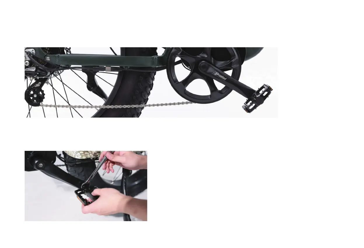 side. After initial hand-tightening, fi nish tightening the pedals with a standard 15 mm wrench .