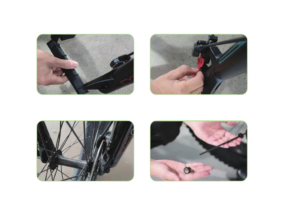 Step 1: Remove the black protective guard from the front fork. Then, extract the red pad designed to safeguard the hydraulic brake caliper.