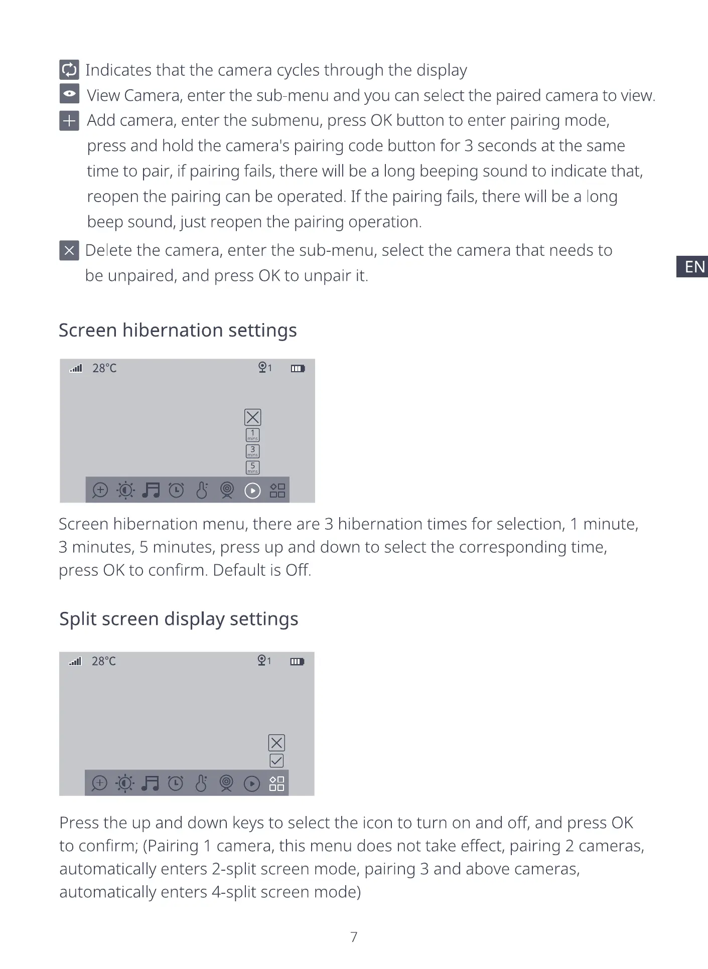 to confirm; (Pairing 1 camera, this menu does not take effect, pairing 2 cameras,