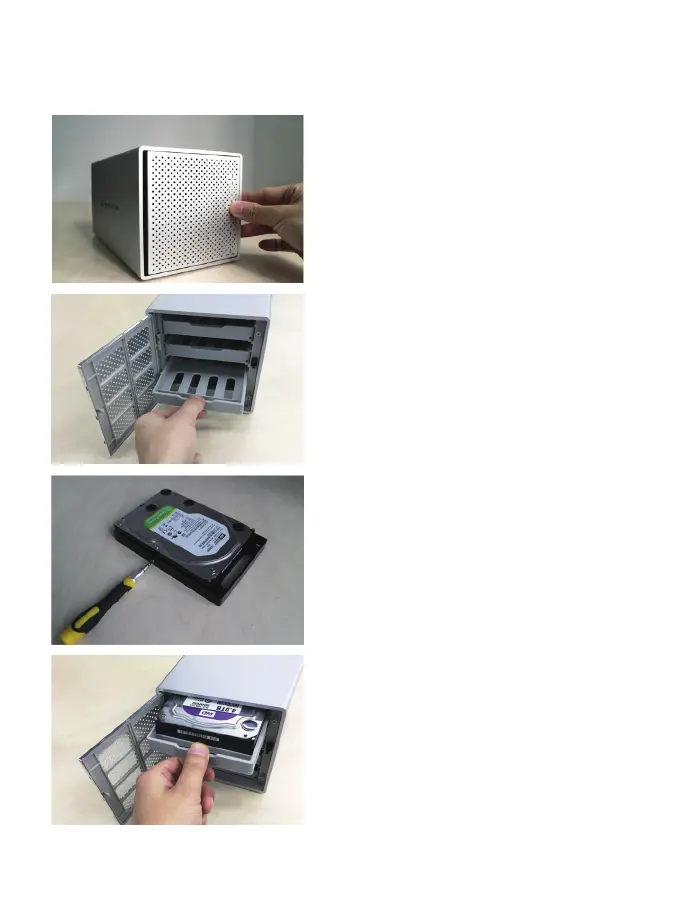 Yottamaster PS100U3 - Hard Drive Installation Process; Opening the Enclosure Door; Removing the Disk Tray; Mounting Hard Drives