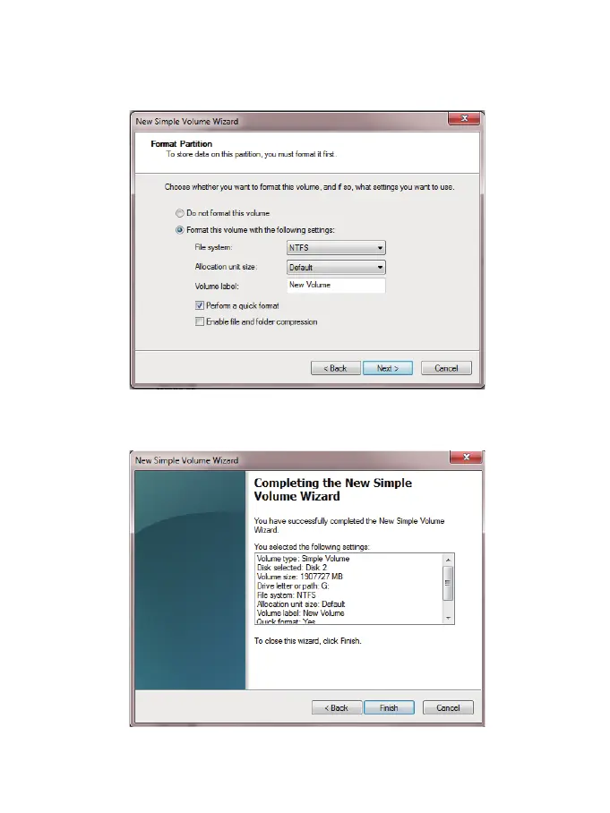 (6) Format your new volume. You can set the file system (NTFS or FAT32), and allocate