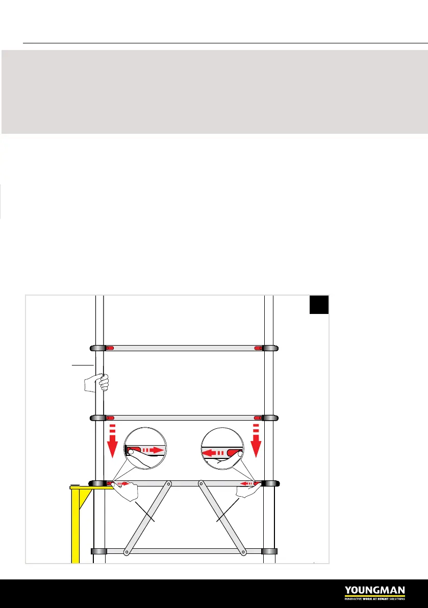 NEVER place your hand or ngers on rungs that are being lowered onto another