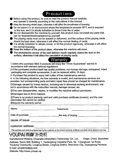 is no product warranty card and valid purchase certificate (invoice), and the user
