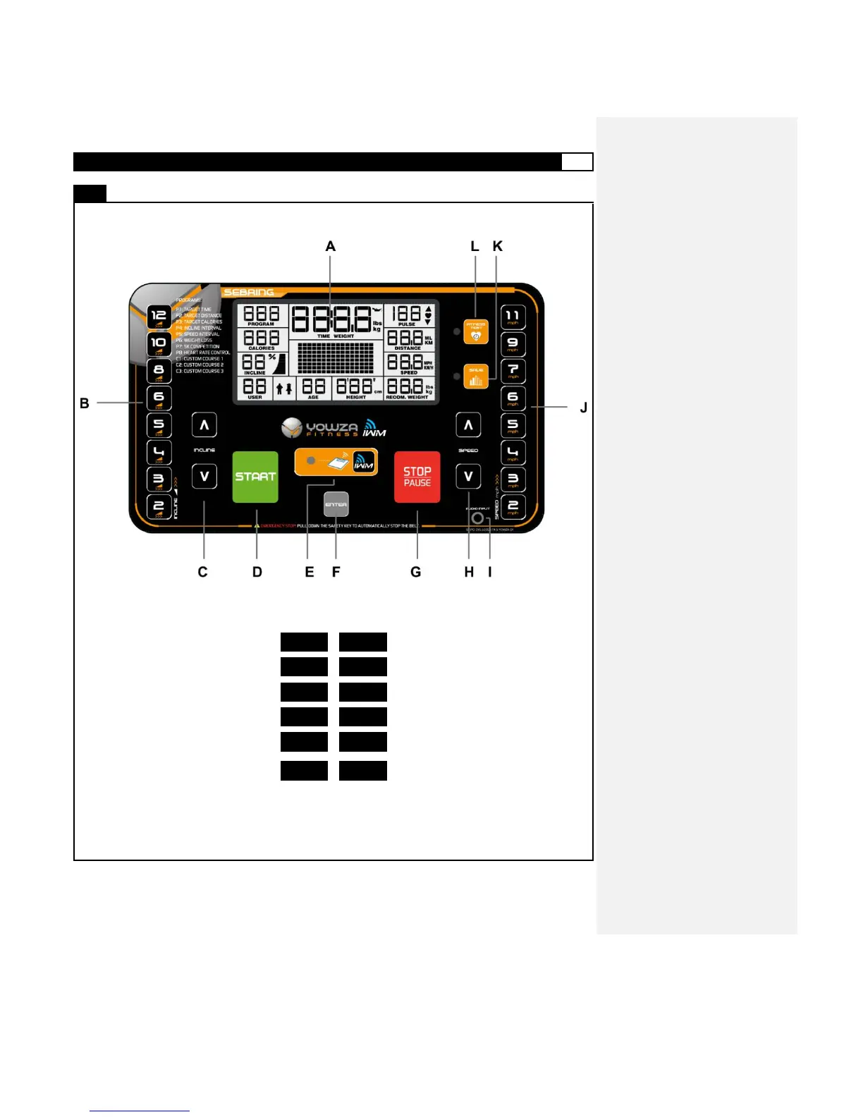 INCLINE UP/DOWN BUTTON