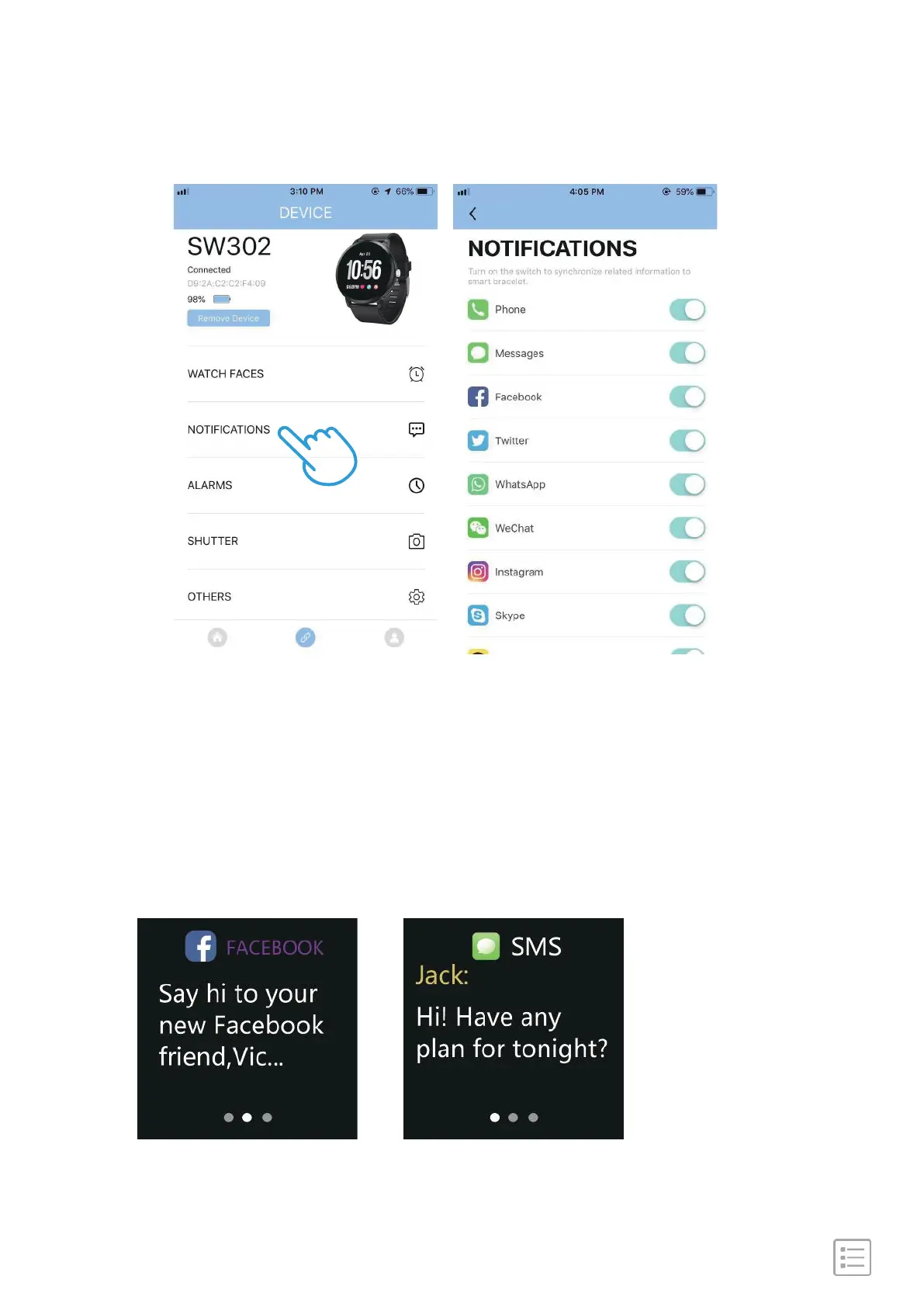 notification causes the watch to vibrate.