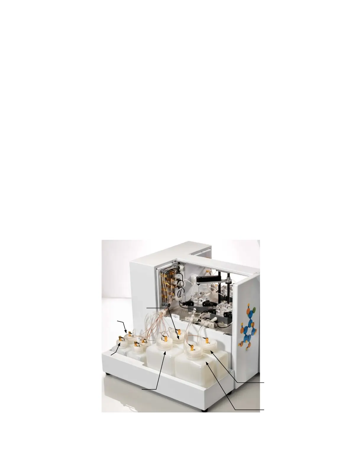 2. If you are not using the reagent level sensing option, place the YSI 2937 Bottles on the left side of the instrument.