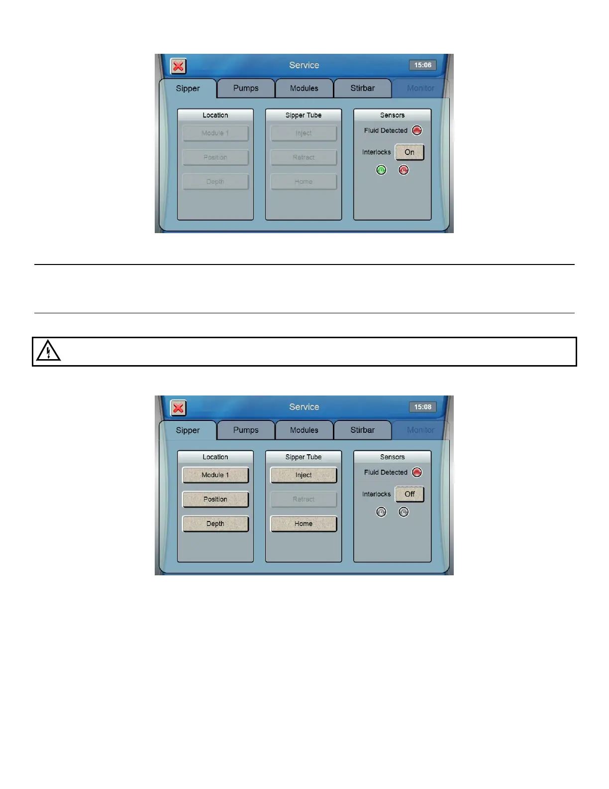 1. From the Sipper tab of the Service screen, touch [Module 1].