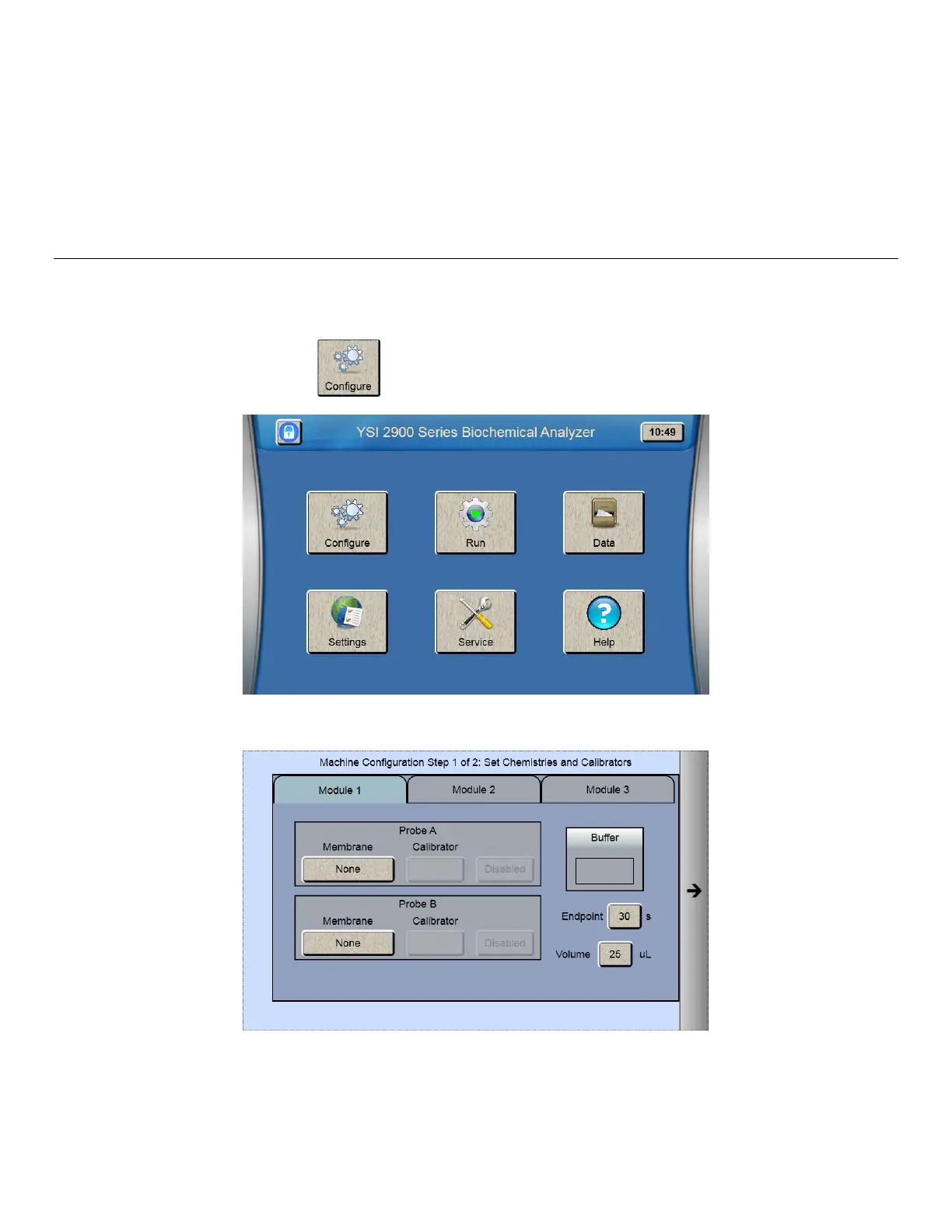 2. From the [Module 1] tab, touch the Probe A membrane button.