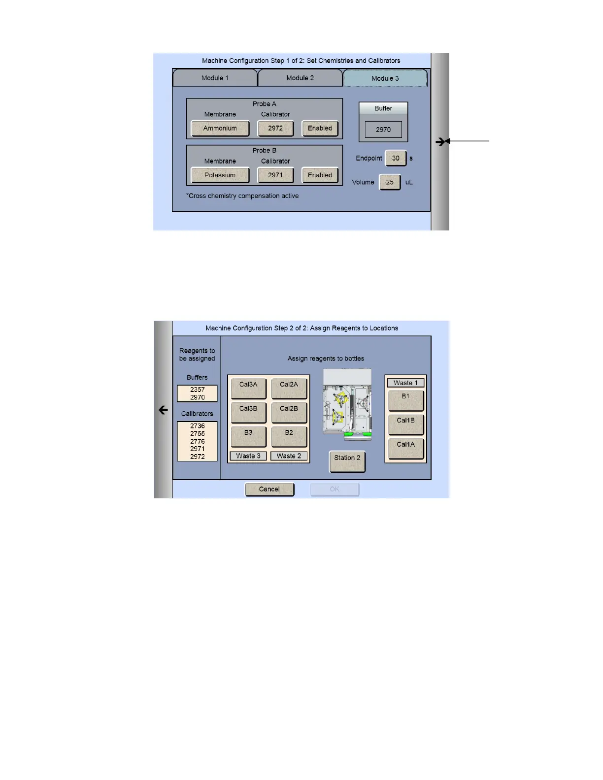 Once you have selected all the chemistries you want to measure, touch the Next arrow on the right of the screen. The
