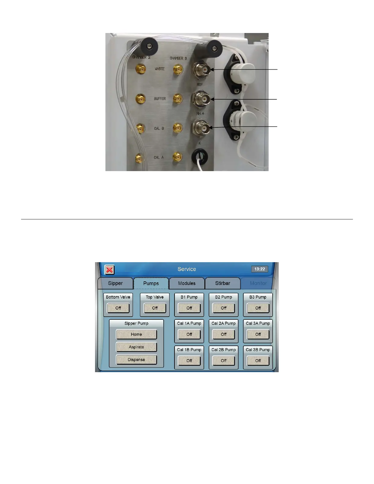 4. Once buffer flows from the end of the sipper, touch the button under B1 Pump to stop the pump.