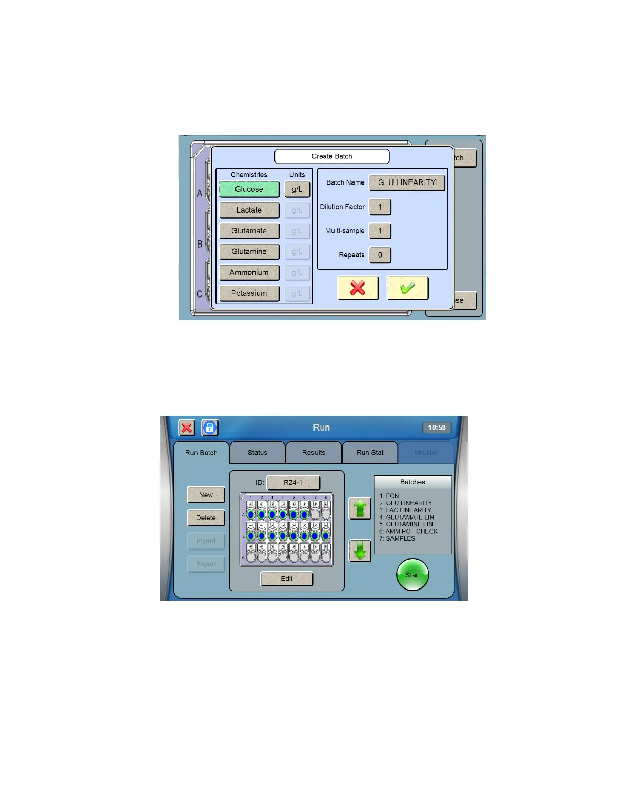 20. Touch [Start] to run the FCN and the linearity standards as samples.