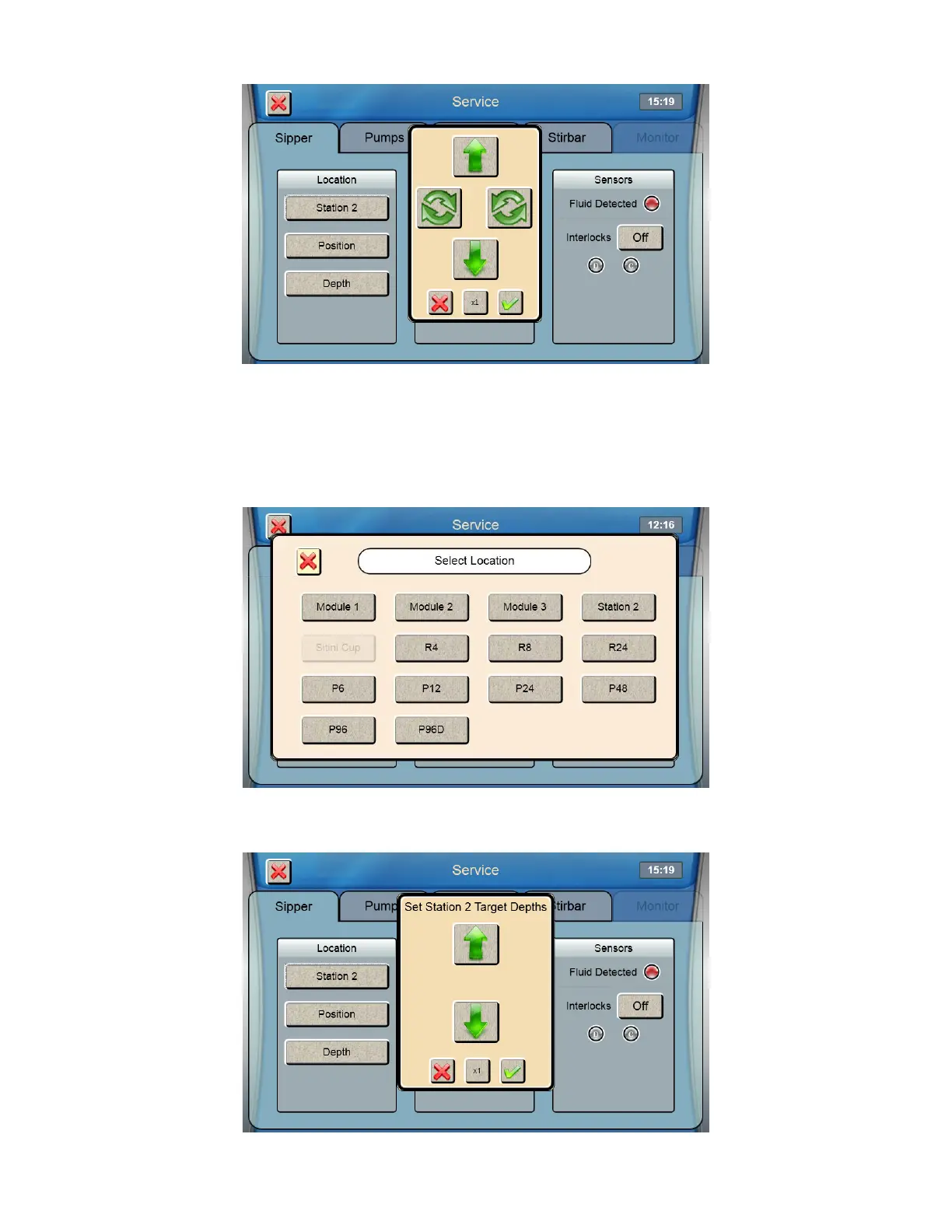 Touch [Depth] and select the location. The sipper will move to the selected location.