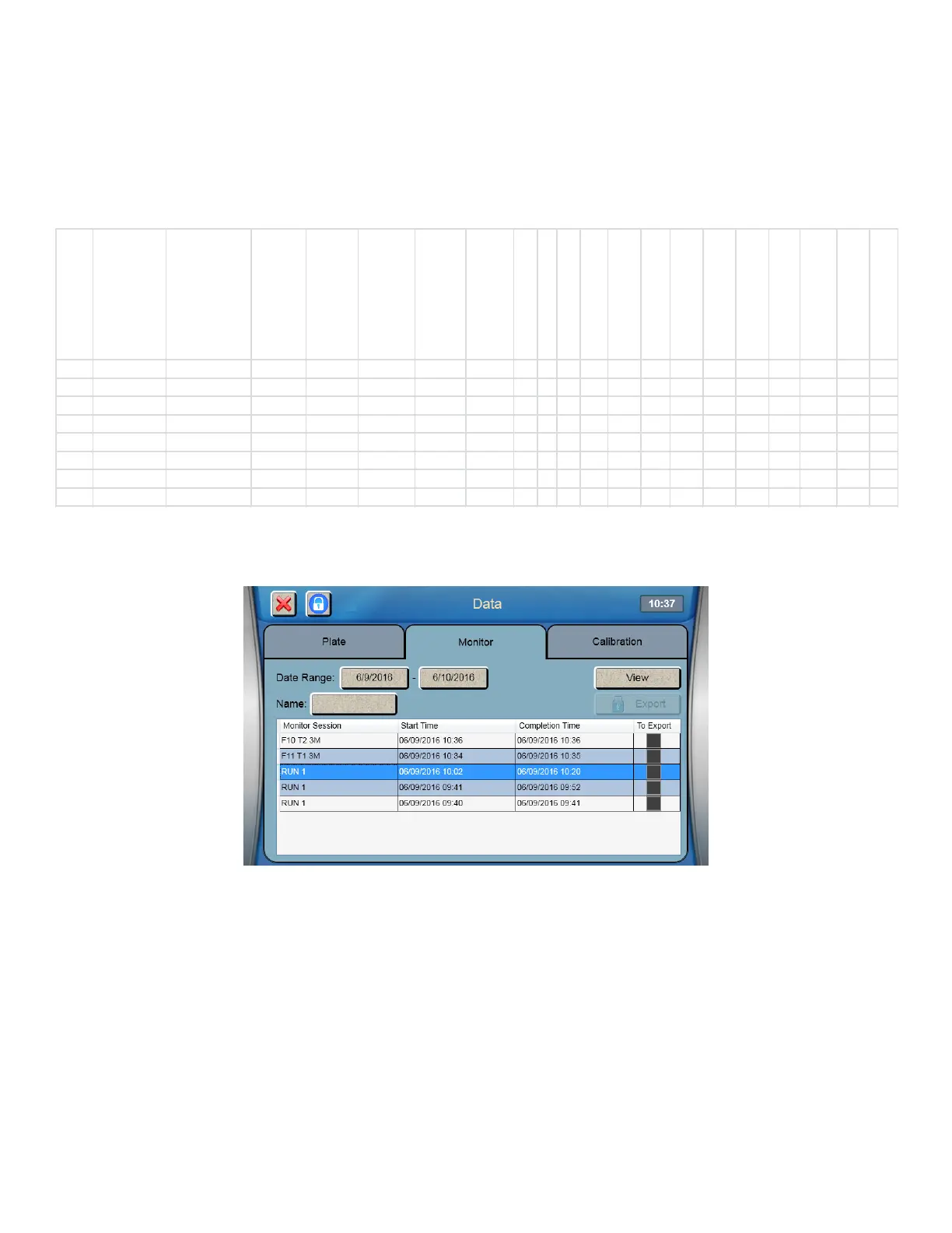 Plug a flash drive into the 2900 Series’ USB port, then touch the [Export] button to send the selected sample results from