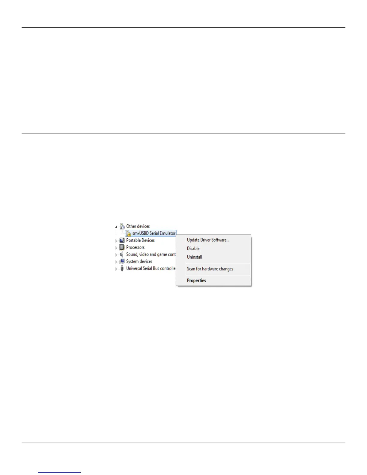 3. Under Other devices, right click on smxUSBD Serial Emulator and select Update Driver Software