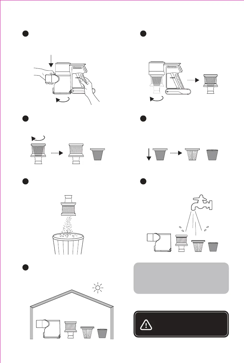 Spülen Sie die Staubbox und Filter ab.