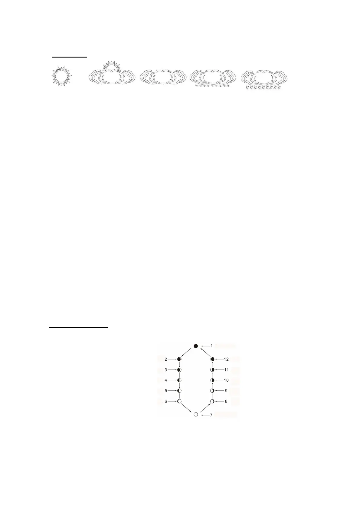 1 : Neumond 2/3: zunehmende Sichel 4 : Halbmond (erstes Viertel)
