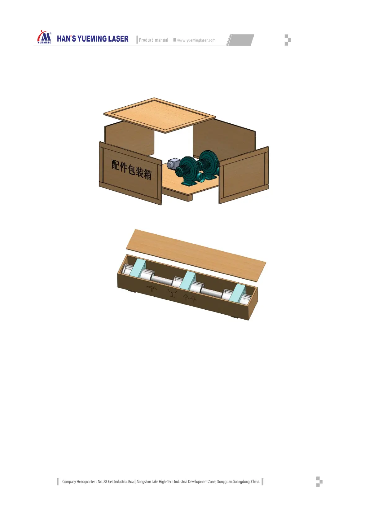 Then open the accessory crate, laser tube crate and laser crate.