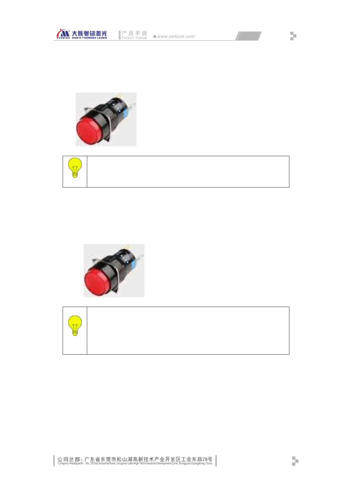 Self-locking illuminated button (laser) is mounted in the fourth hole on the control panel.