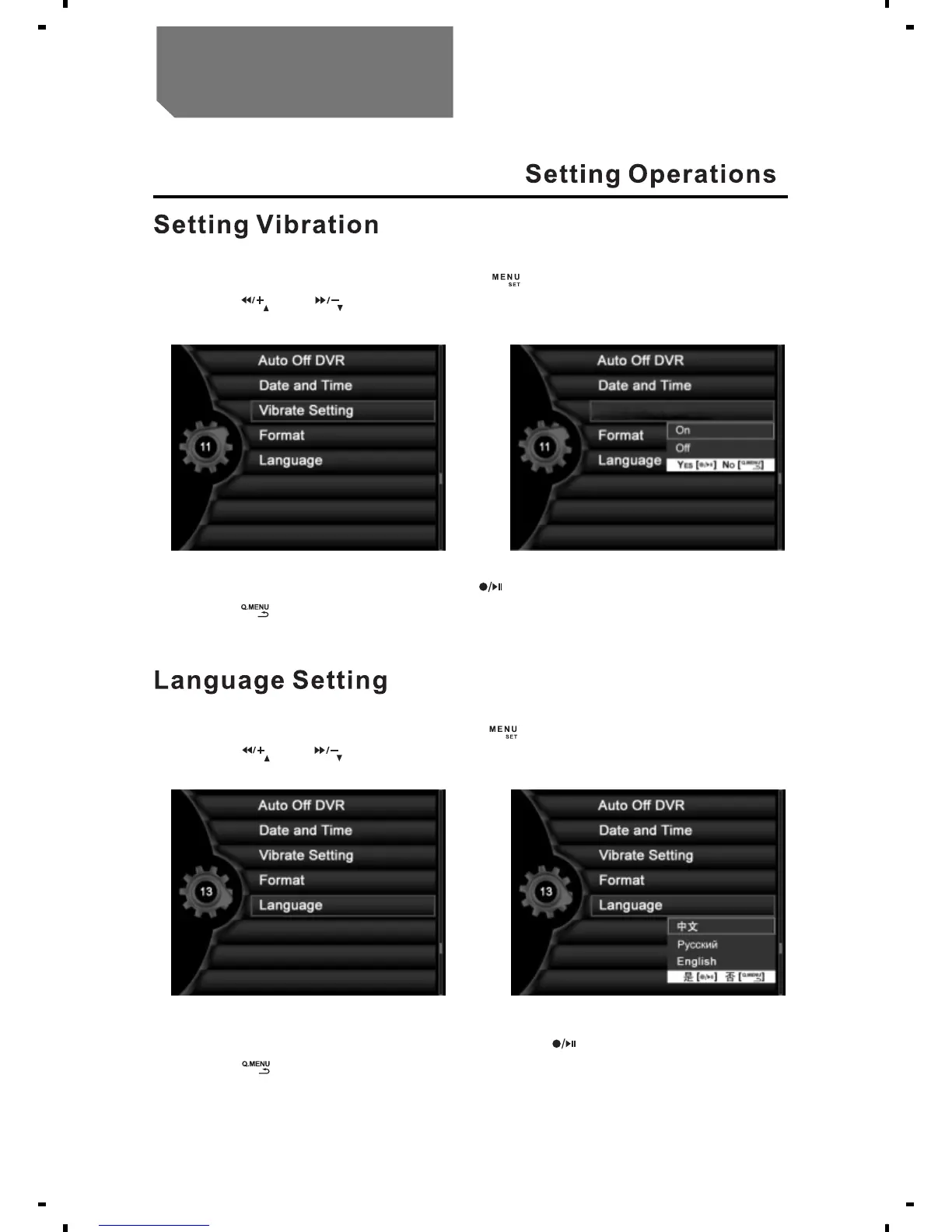 b. Press [ ] or [ ], select the "Vibrate Setting" as illustrated.