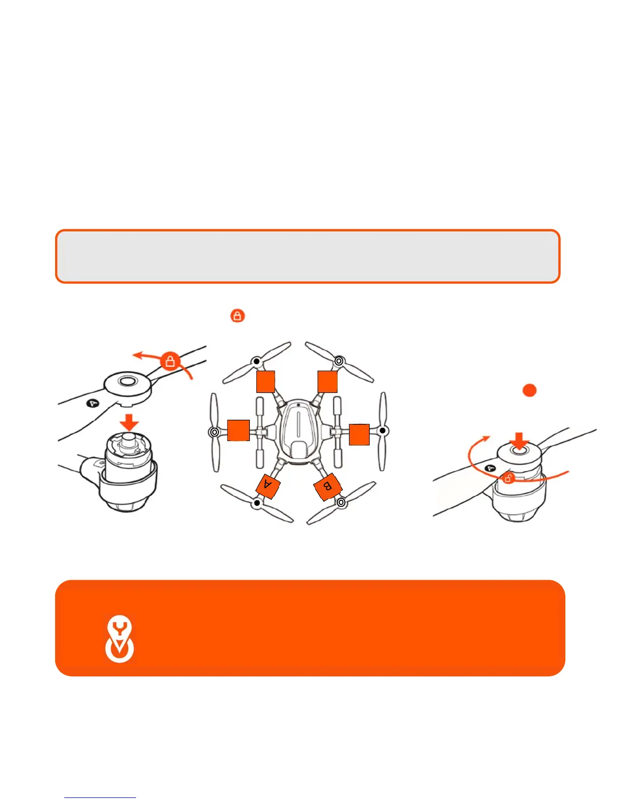 Each propeller has an A or B label etched into the blade. “A” propellers cannot be attached to “B” motors,