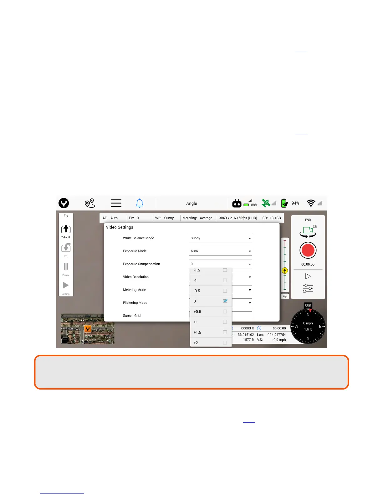 The following settings are available in the Exposure Compensation drop down menu for E90: