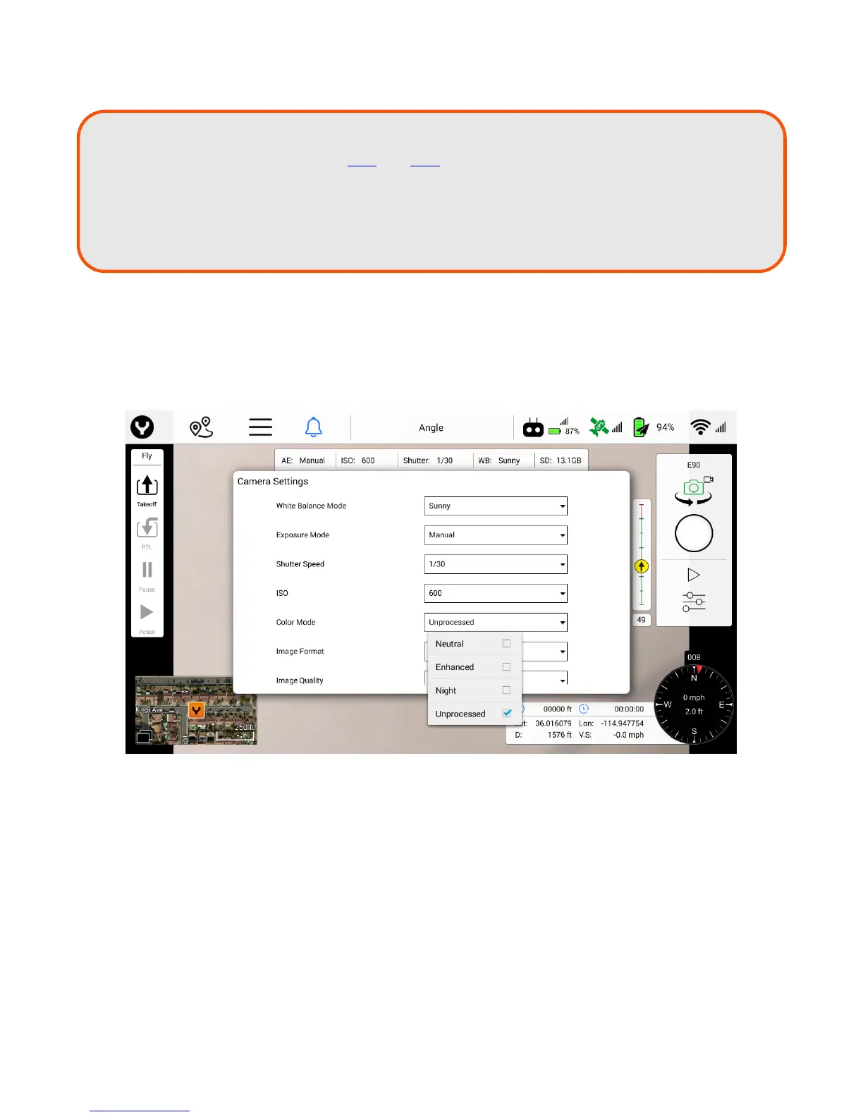 For images that will be processed in photo or video processing software after a flight, Yuneec recommends