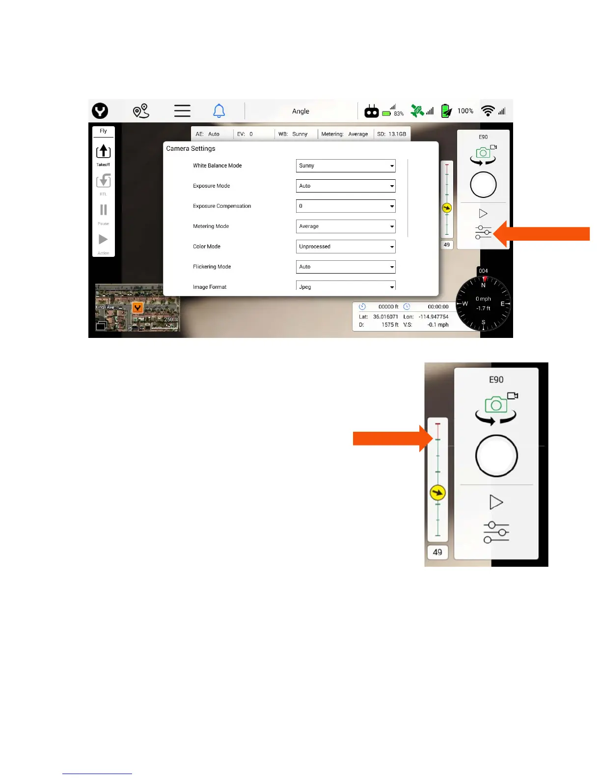 The gimbal indicator is located to the left of the Camera Control panel. The