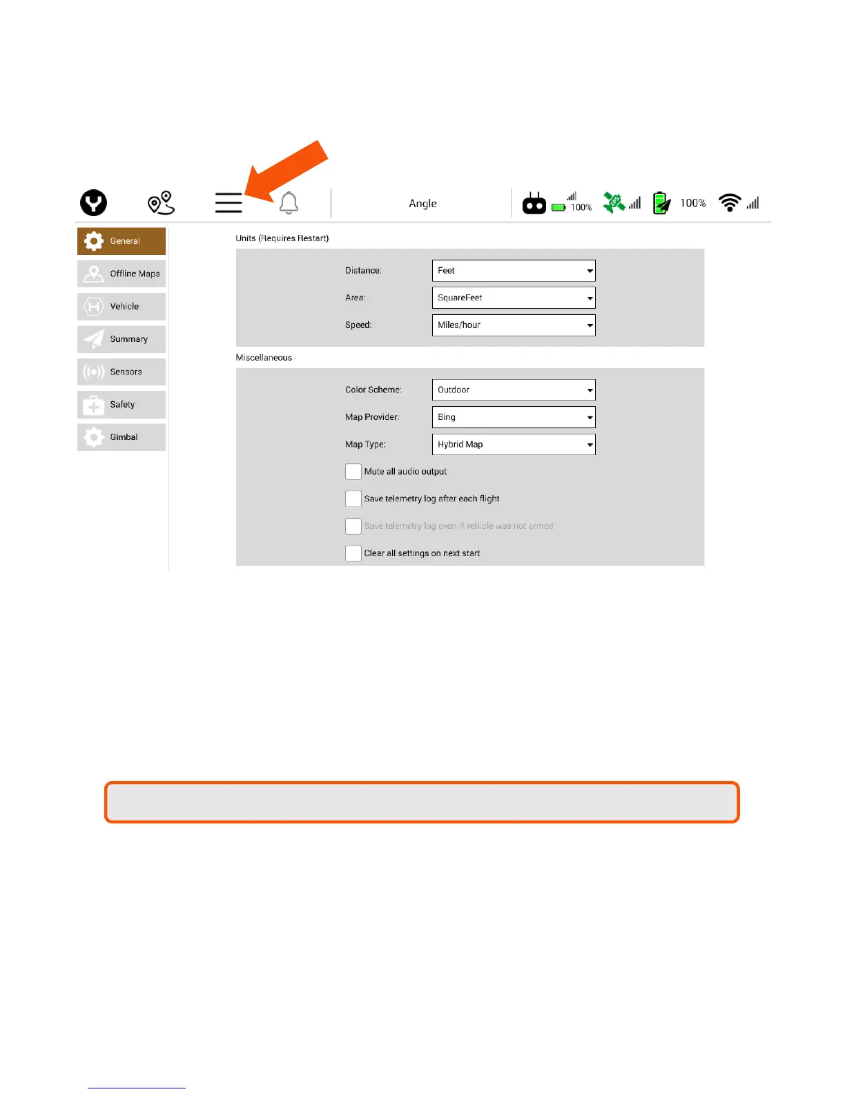 Tap the horizontal three-line icon on the top menu bar of the ST16S. The General Settings Menu enables
