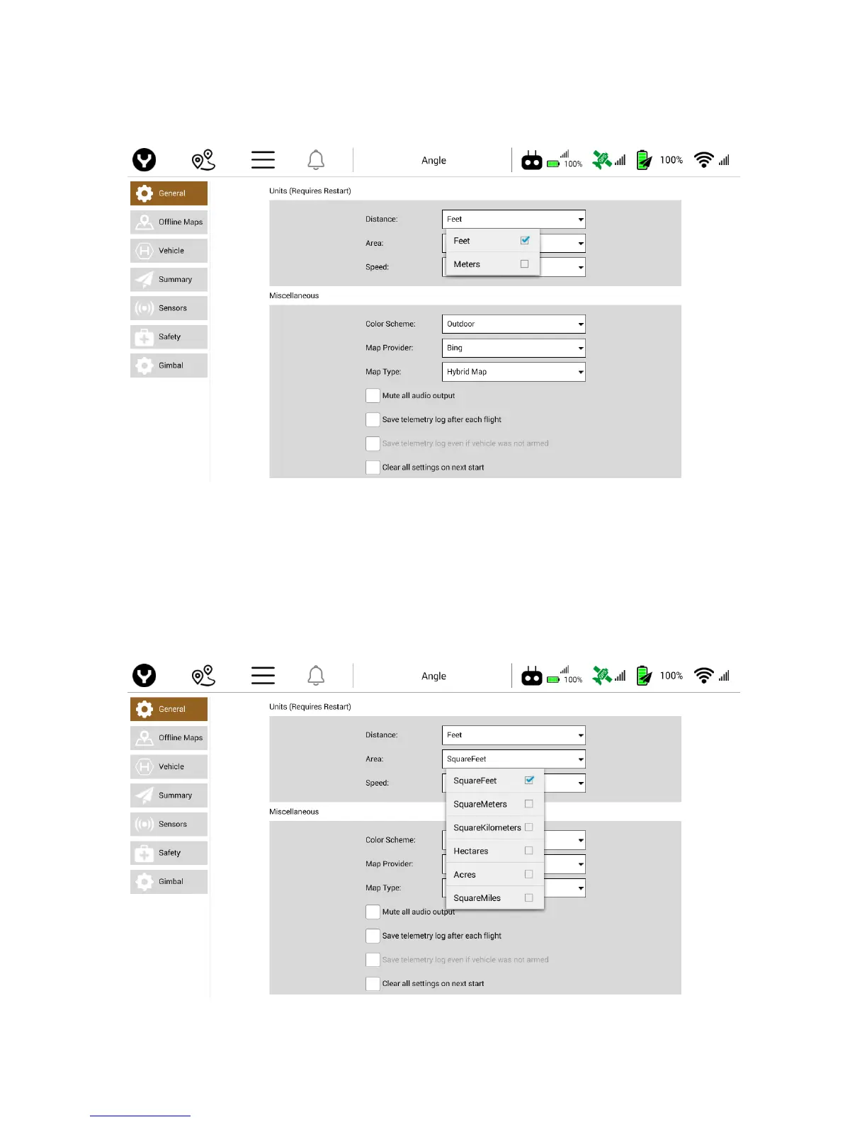 The Distance menu allows the pilot to select the displayed distance units, either Feet or Meters.