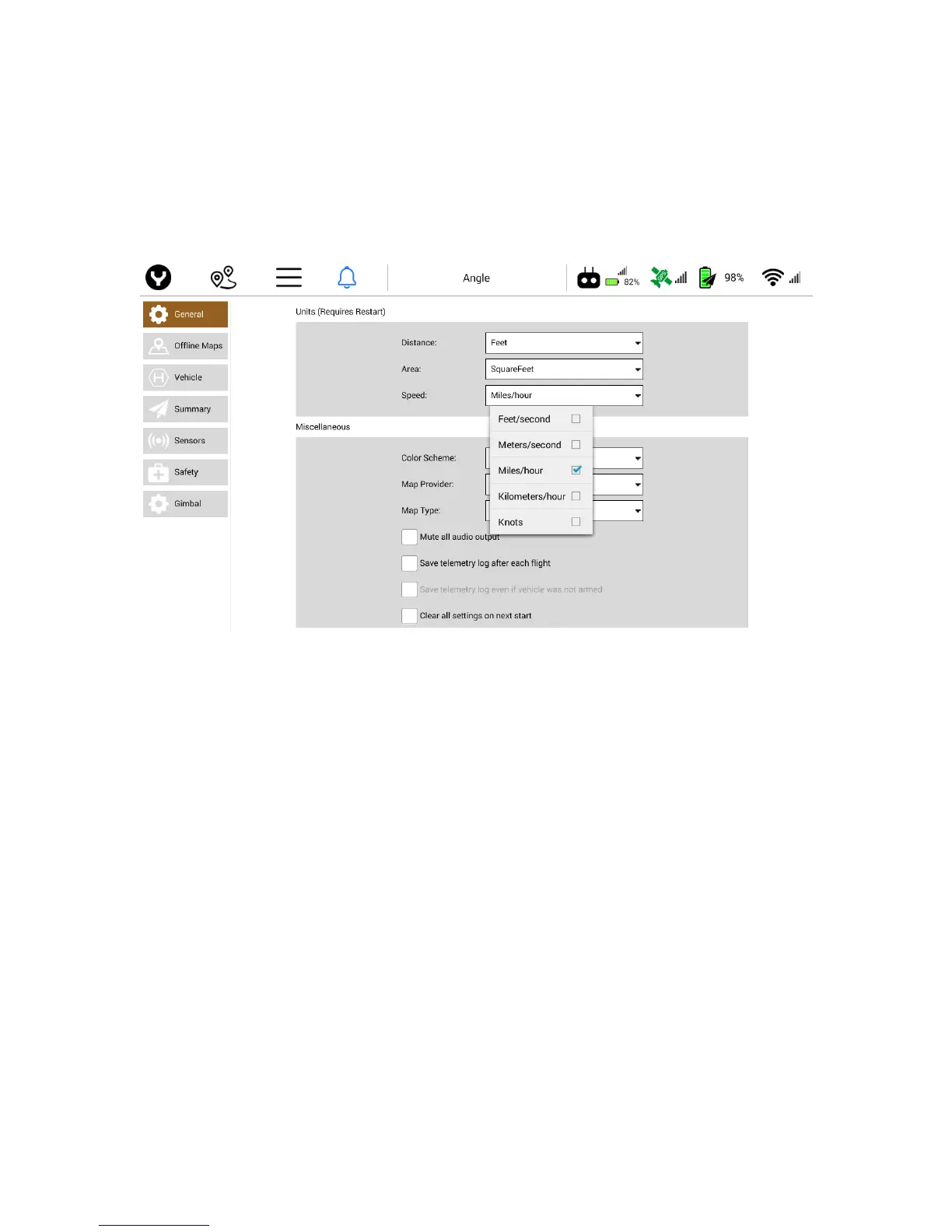 The Speed drop menu allows the Pilot to change display between the following settings: