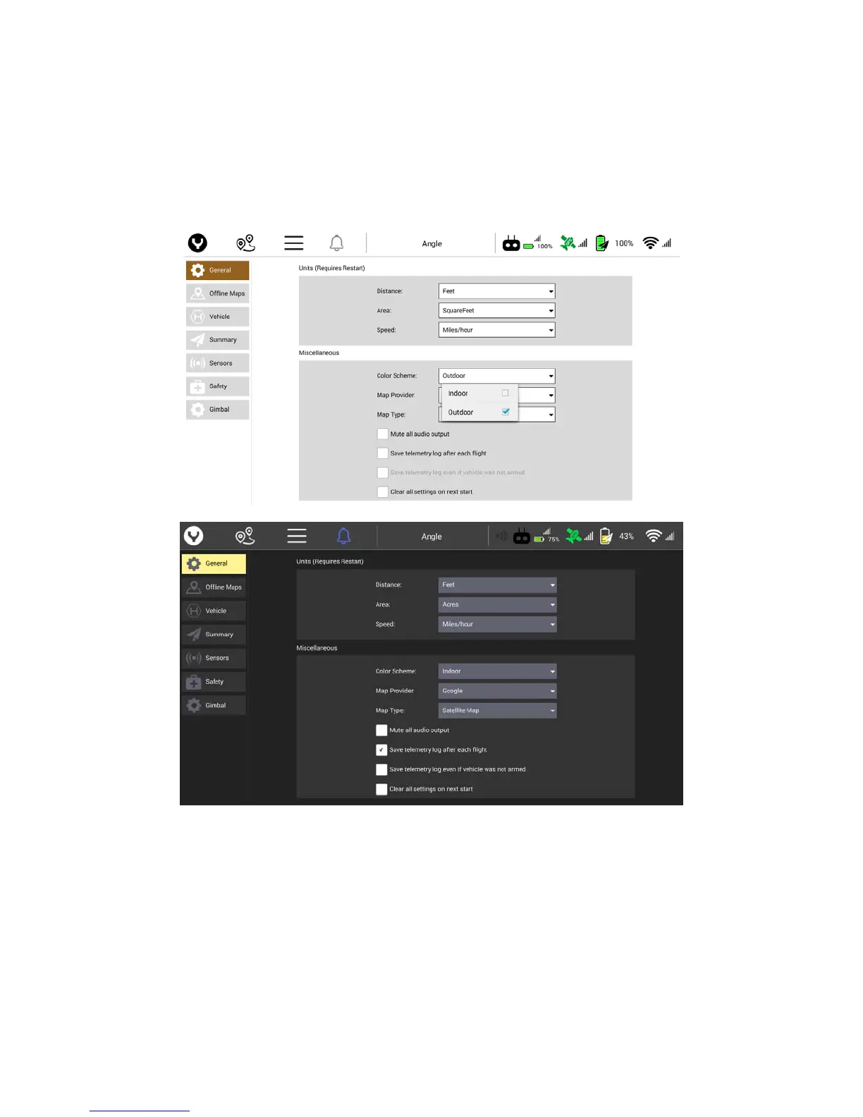 YUNEEC H520 - Color Scheme; “Indoor” Display Properties