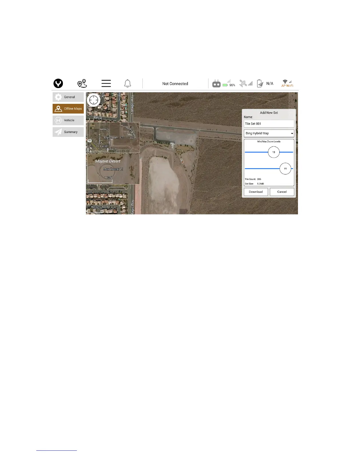 Using the slider bars, the Pilot can adjust the Min and Max Zoom levels for the downloaded map tiles. Tile
