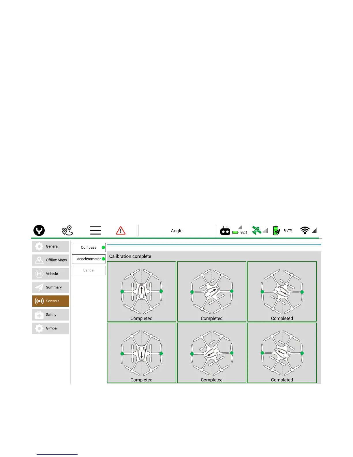 graphical grid will display with six boxes. Each box indicates what is required to calibrate the compass. Pick