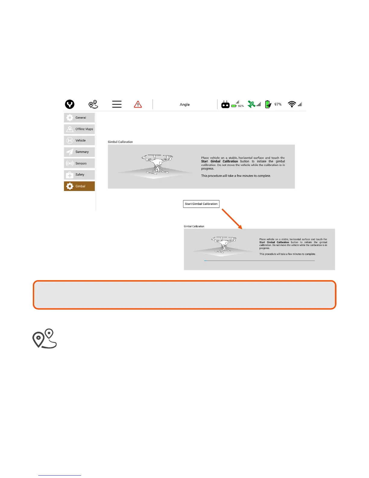 the camera gimbal, place the aircraft on a flat and level surface, then tap the Start Gimbal Calibration soft