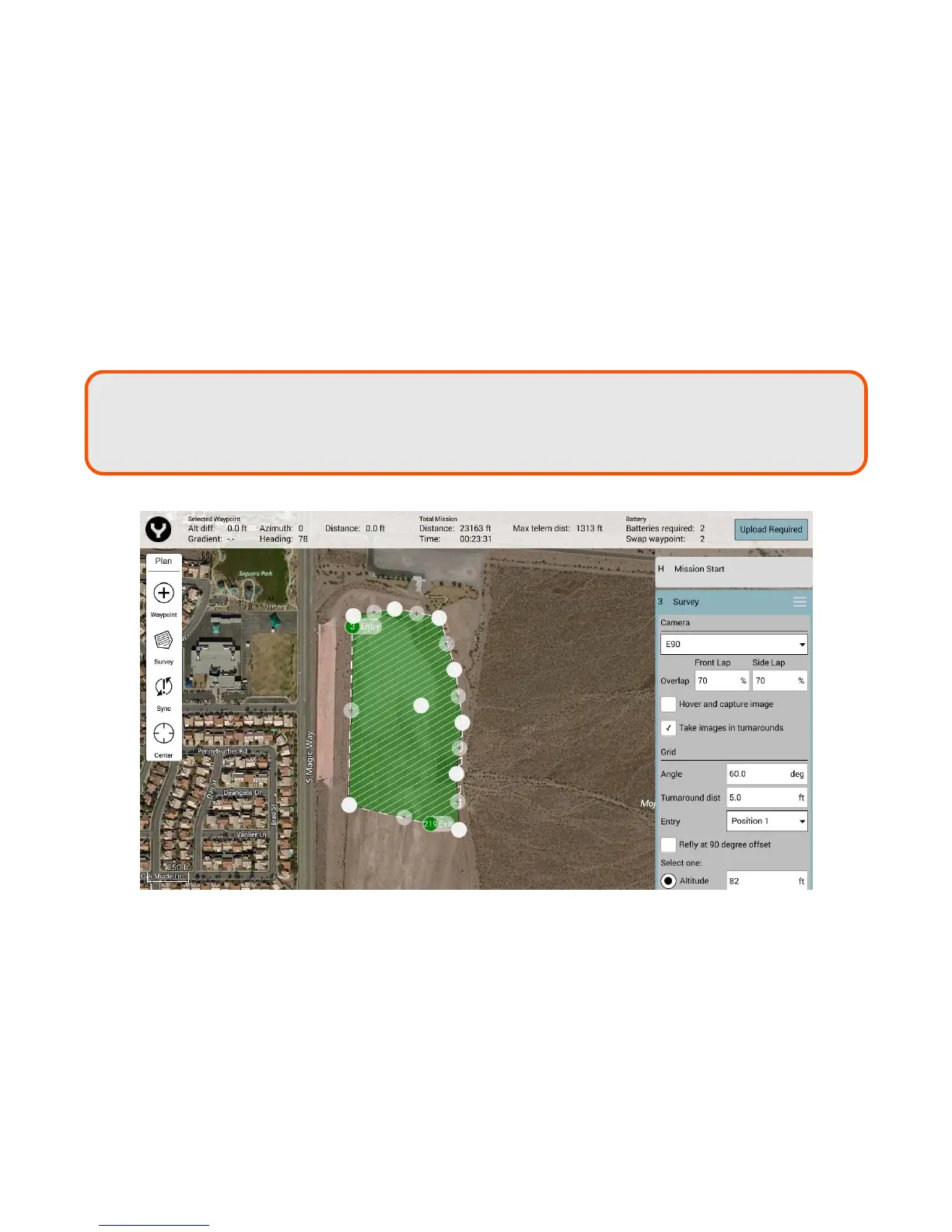 mission, tap the Survey Icon in the Plan panel. This will place a green survey grid in the middle of the screen