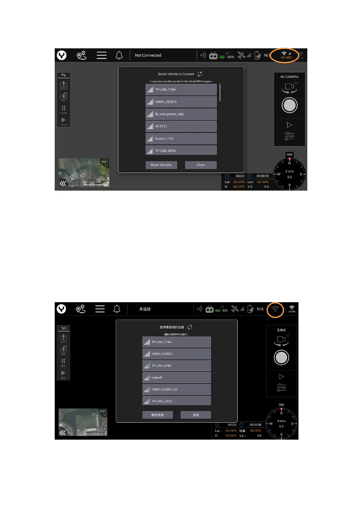 Step 1: After the ST16E and drone are bound, tap the Wi-Fi logo and select a Hotspot to make