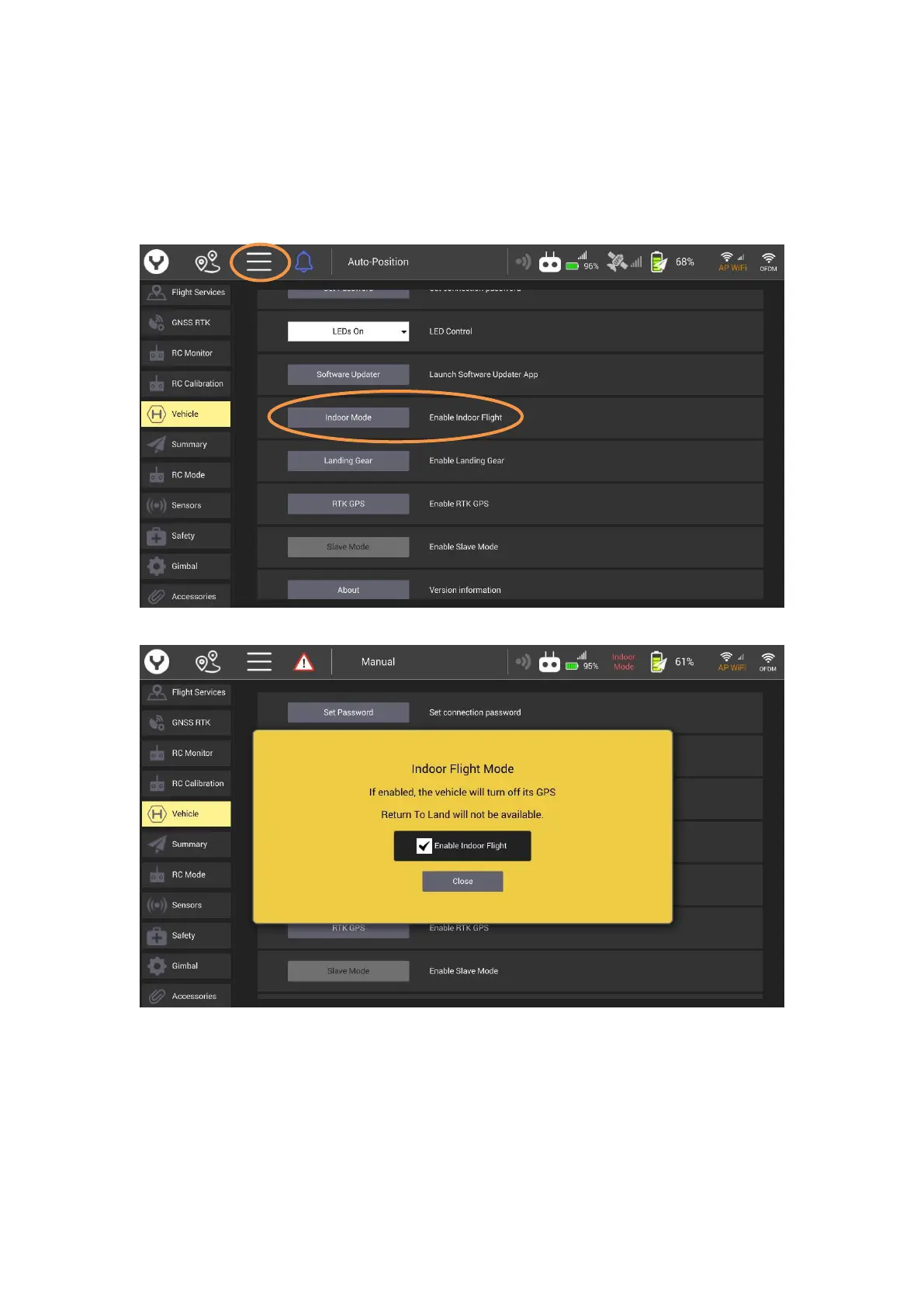 Notice: Please switch back to outdoor flight mode after each indoor flight; otherwise the drone