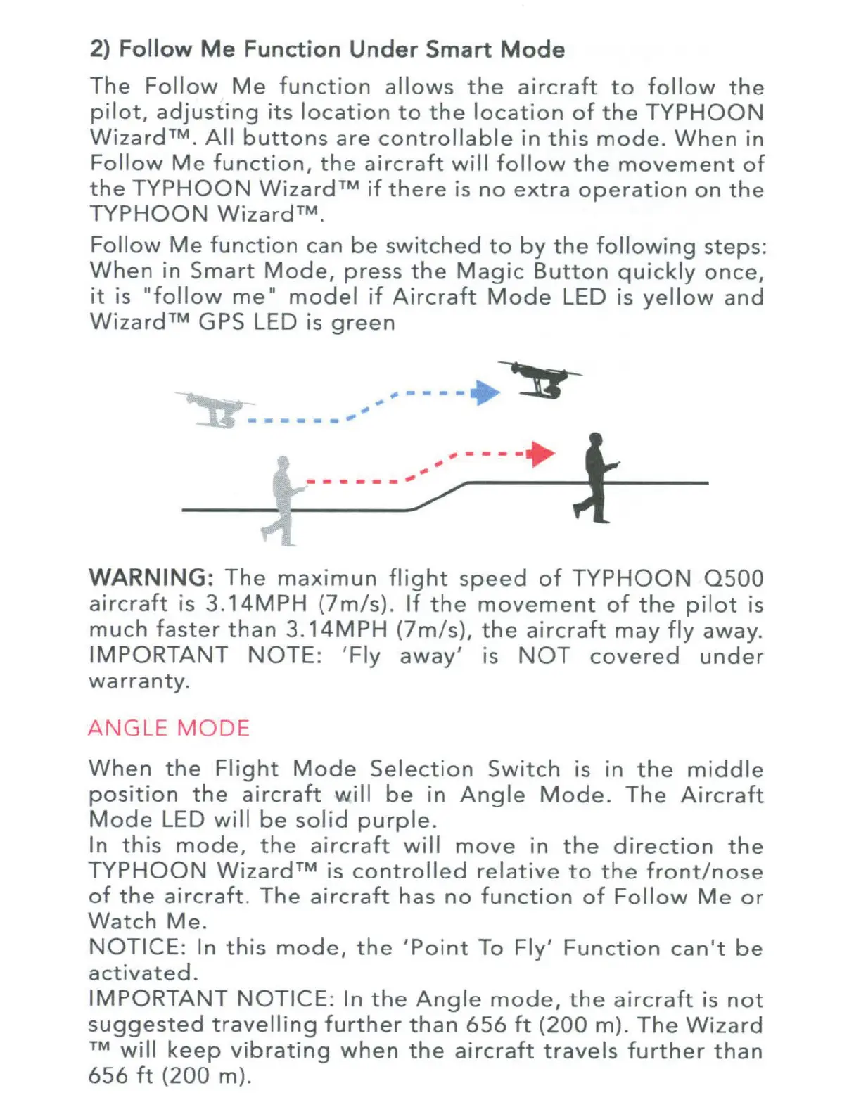 YUNEEC TYPHOON Wizard - Advanced Flight Modes; Follow Me Function; Angle Mode Operation