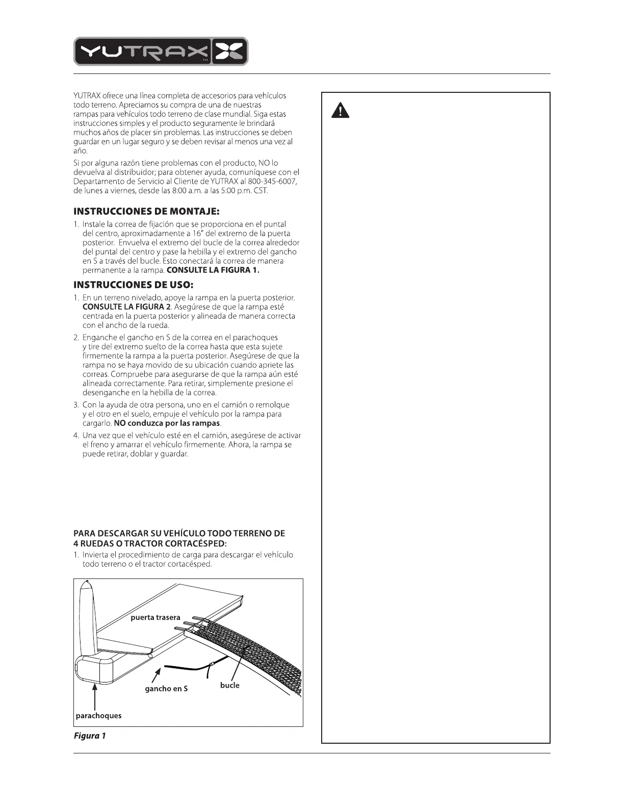 Page 4 Check for parts online at www.yutrax.com or call 800-345-6007 M-F 8-5 CST