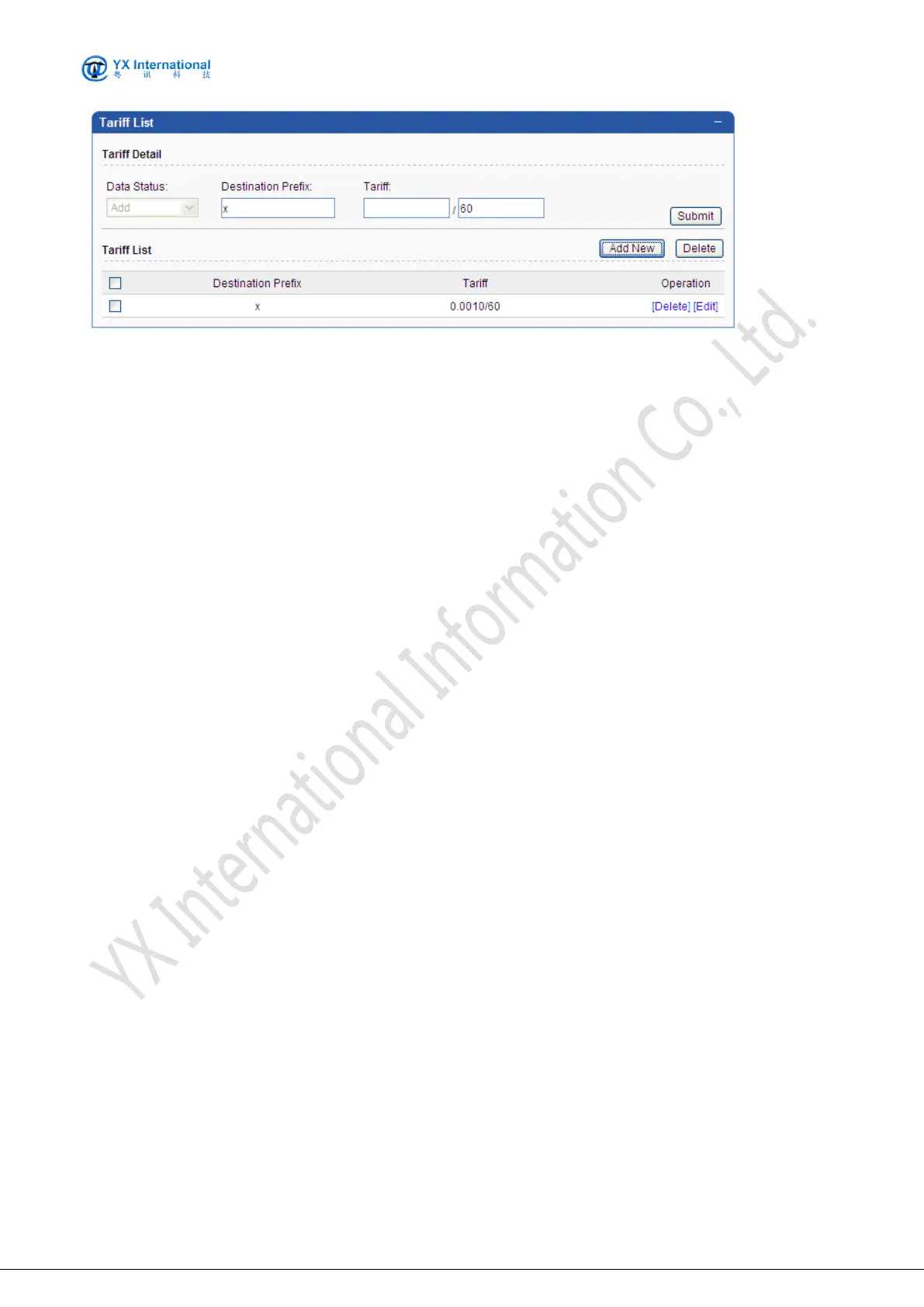 Tariff: Specify the tariff detail. In the picture, the tariff means 0.001 balance value will be