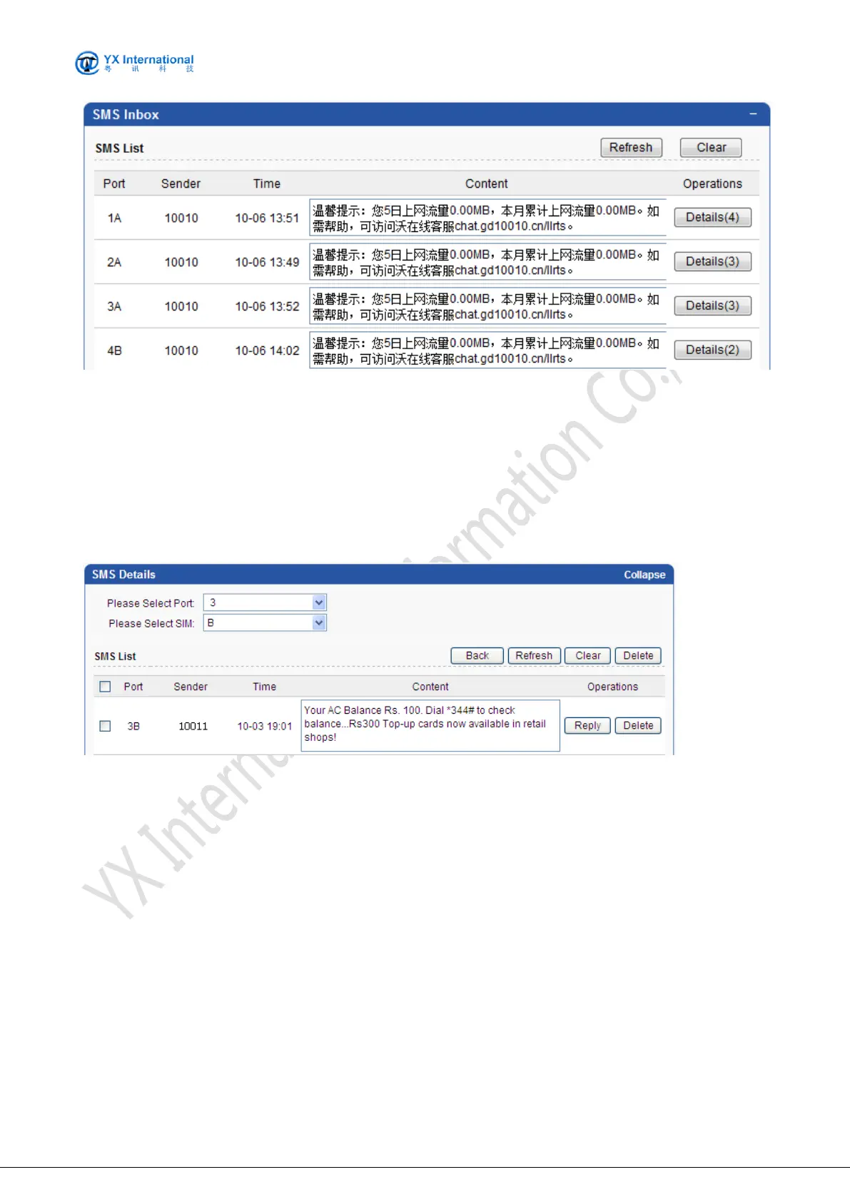 Port No: The MOIP Gateway mobile port. Each port contains one or four card slots. Port No