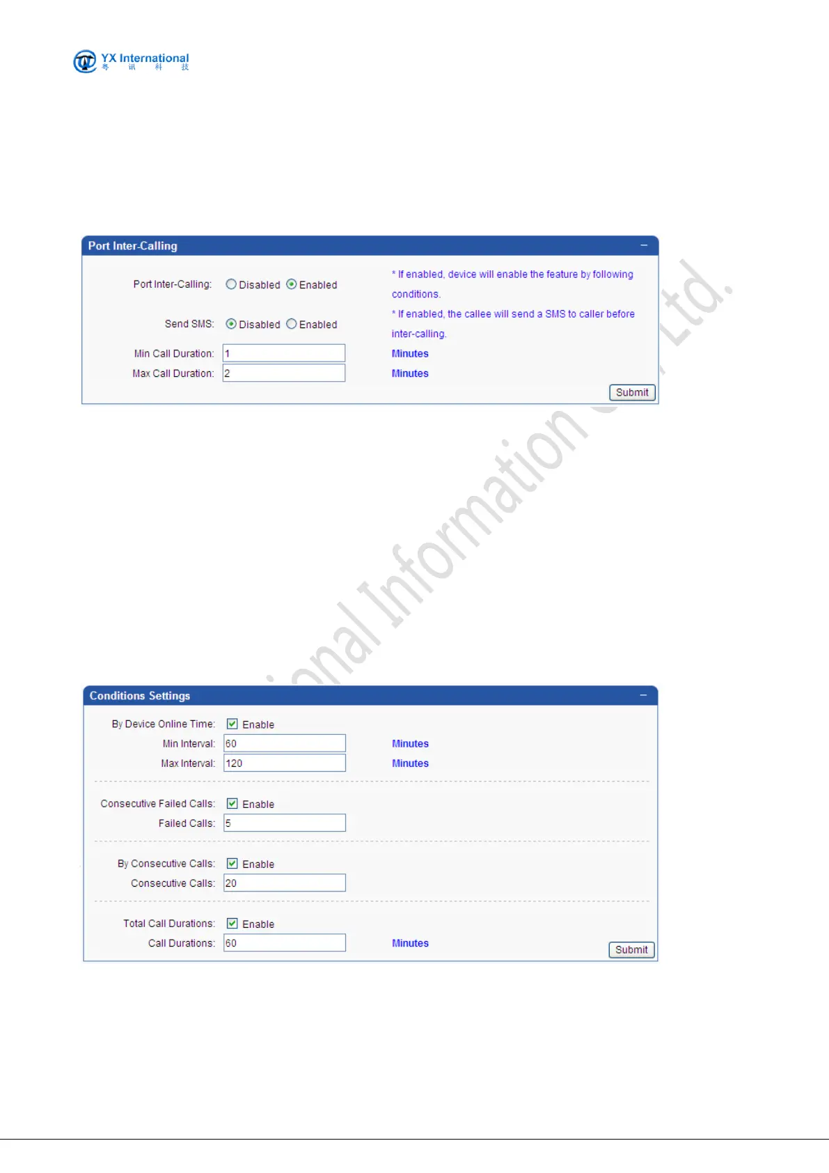 When enable “Port Inter-Calling”, every SIM can receive income call in period which is custom