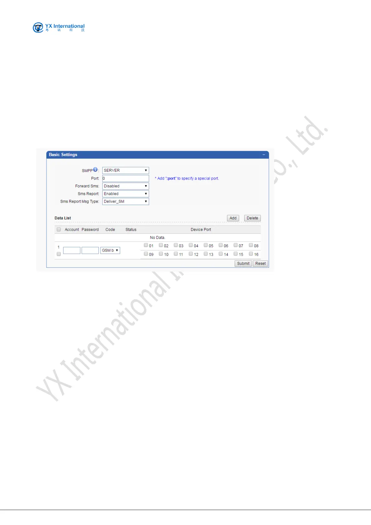 This setting can be used to running the network SMS business, which needs to be connected to the