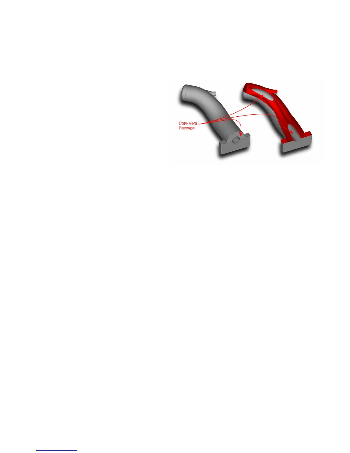• Depowdering very contoured core vents can be a challenge if 3mm DIA vents curve into a
