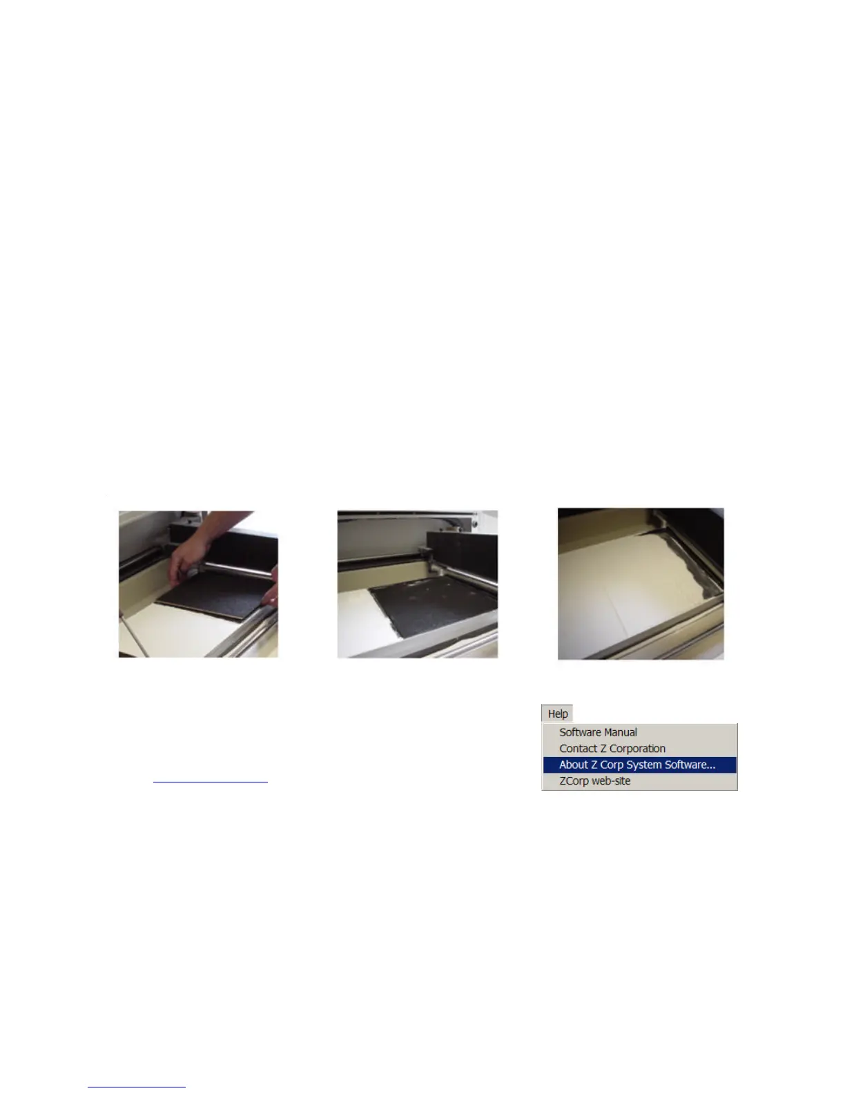 • Fill the feed piston with zp250 powder. ZPrinter 310 users may use the removable build plate (Z Corp.