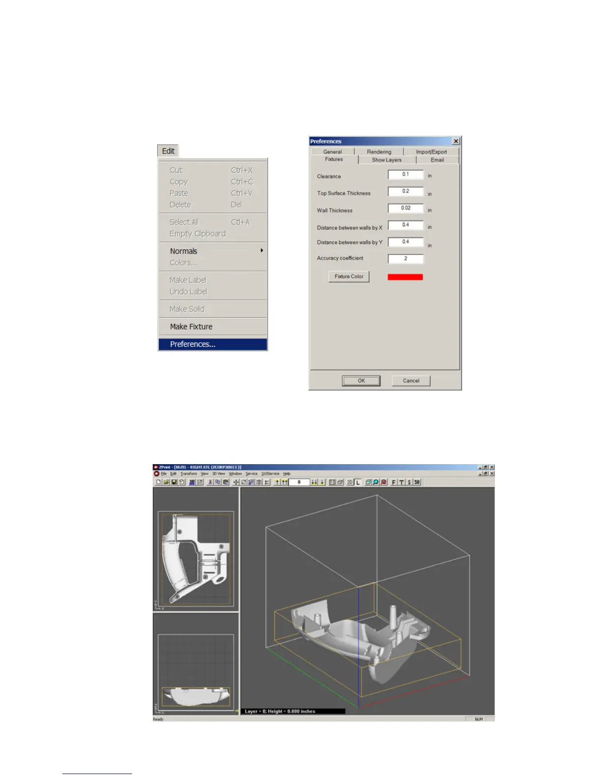 • To change the default values in the “Make Fixture” window, select “Preferences” from the ZPrint