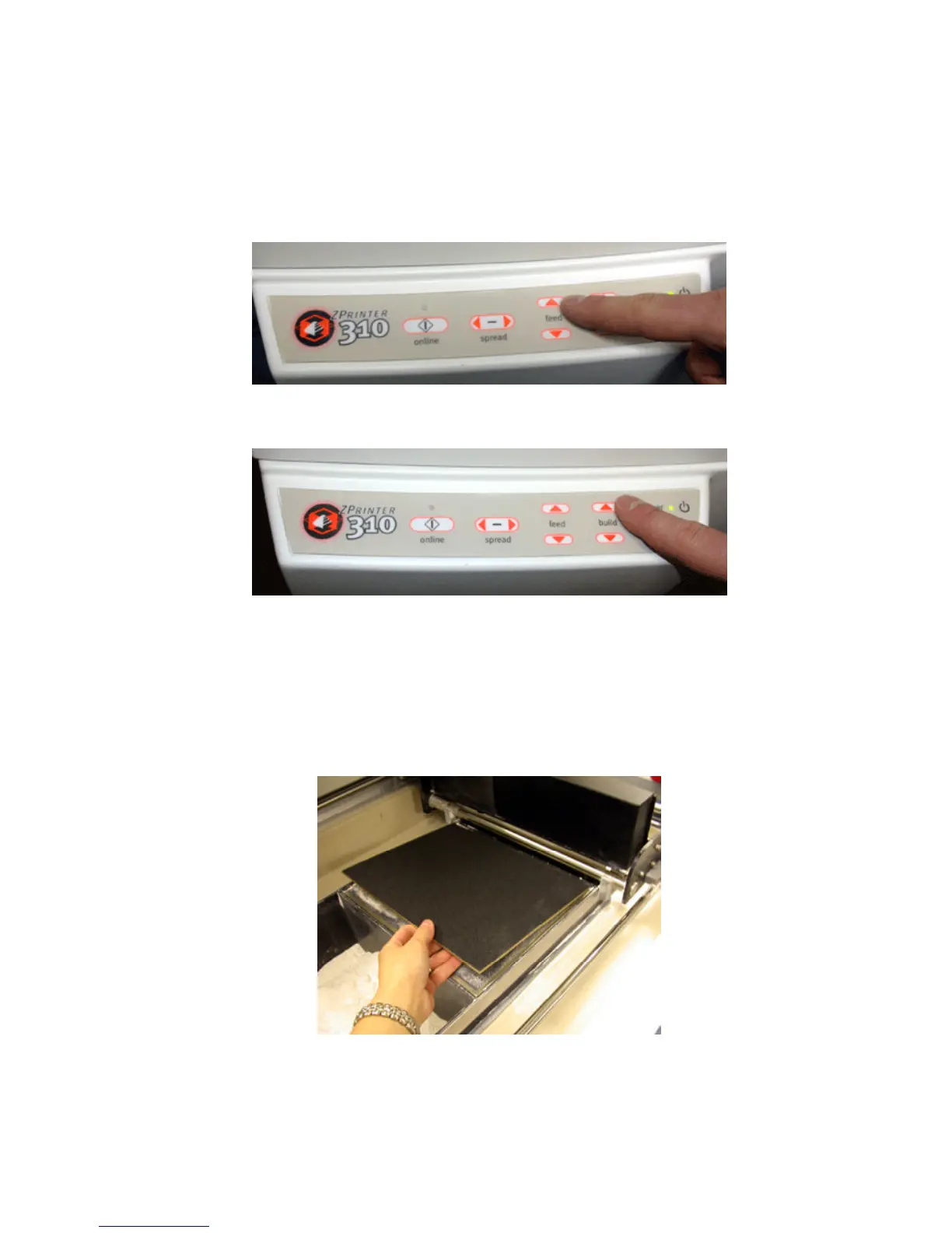 7. Press and hold the feed up button until the surface of the powder is even with the top deck.
