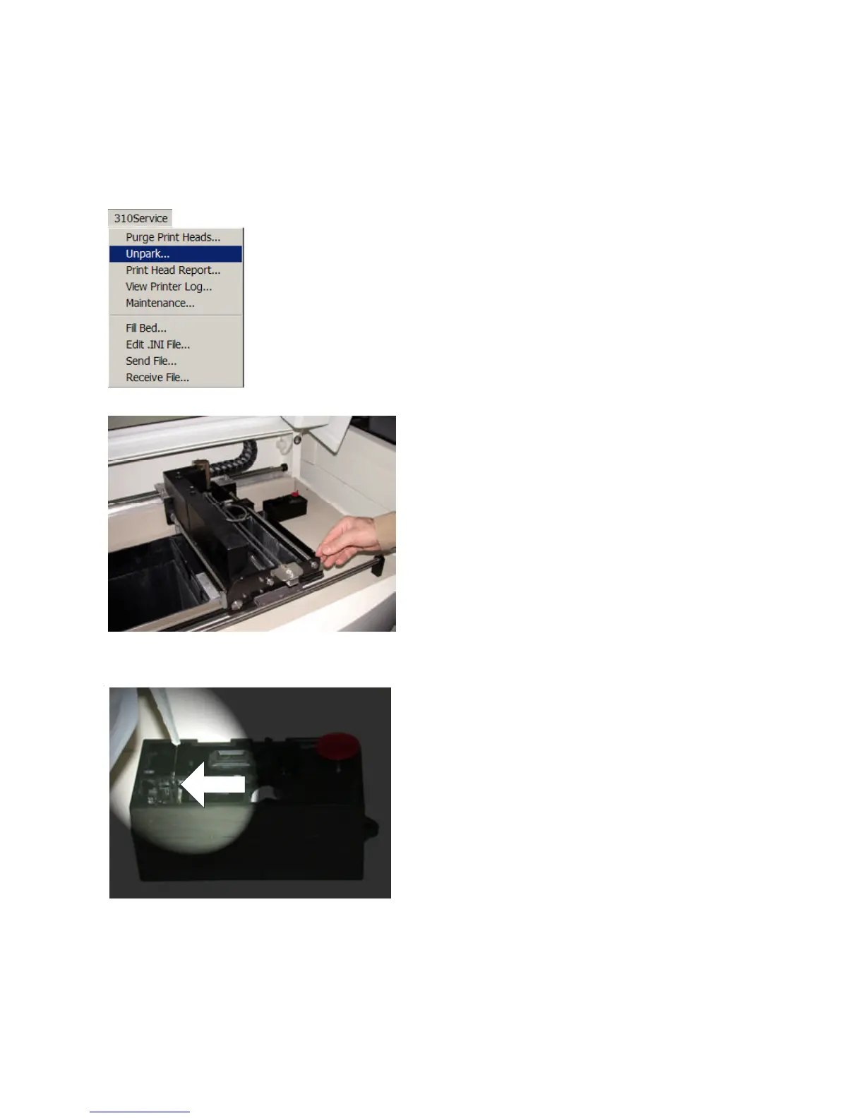 1. Choose the ‘Unpark’ option under the ZPrinter 310