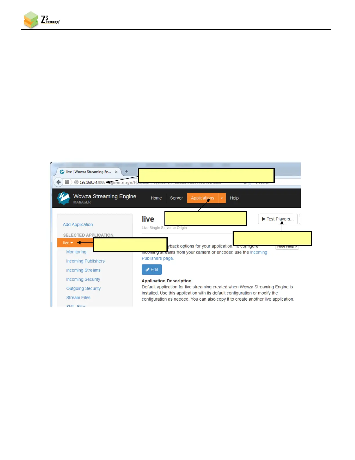 IP address of the Wowza server with the port 8088 (in this example, “192.168.0.6:8088”). This will