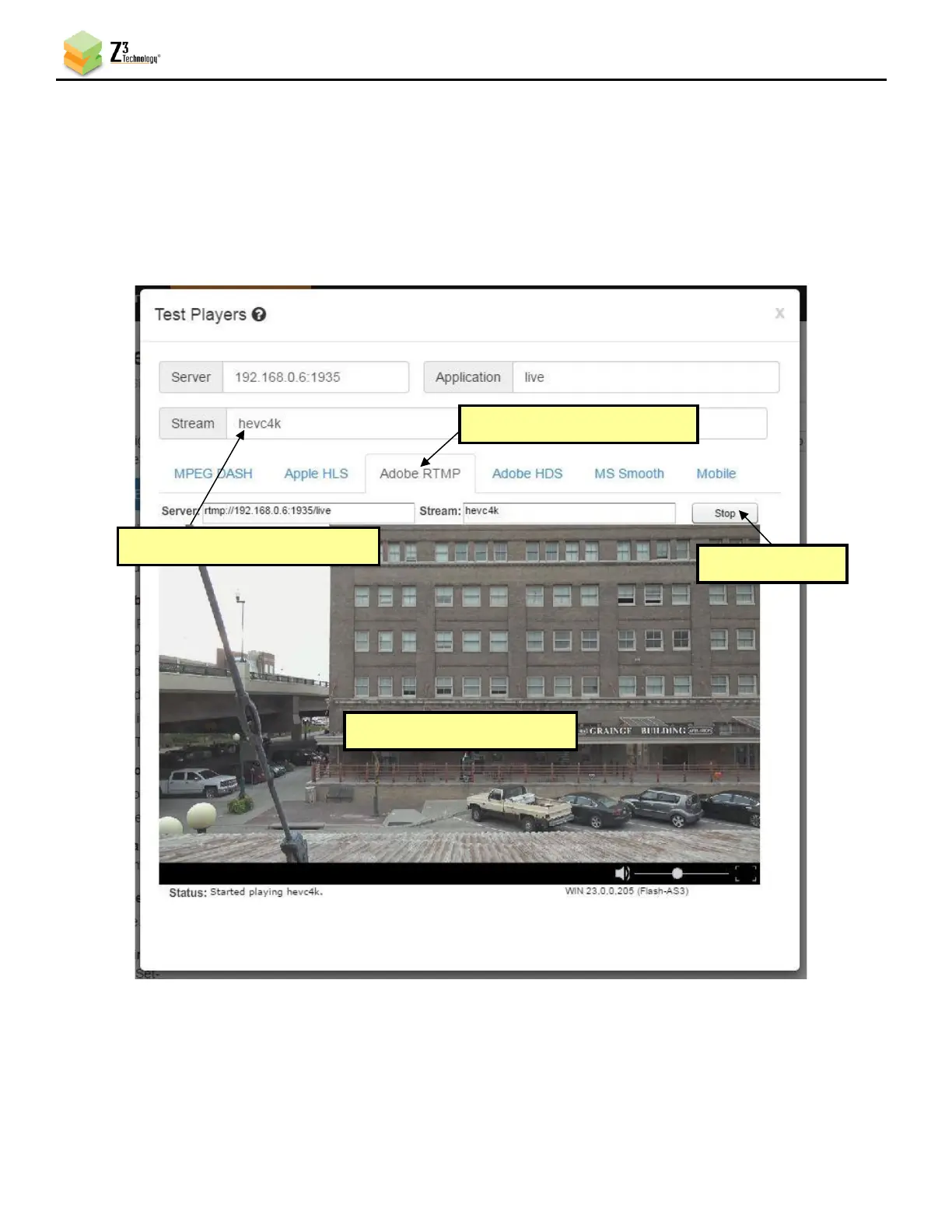 (15) Enter the Stream name you listed as the Dest Address in the ZCube-21 user interface. For this